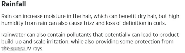 据英媒报道,雨水会增加头发的水分,这对干燥的头发是有益的,但是雨水中会含有污染物,可能会刺激头皮导致脱发!
