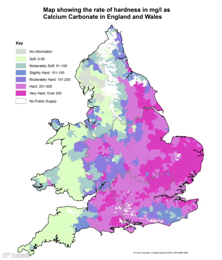 图片来源:统计信息来自于Bristan(英国软硬水分布图)
