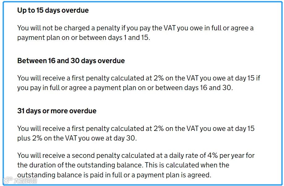 为了帮助企业适应新罚款规则,英国税局表示,企业在2023年1月-12月期间如果出现一次晚支付税局情况,并在到期日后30天内付清,将不会有罚金。