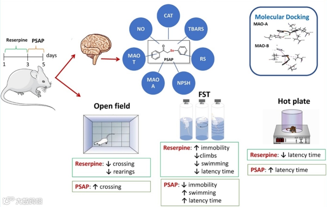 8. α- (phenylselanyl) acetophenone mitigates reserpine-induced pain-depression dyad: Behavioral, biochemical and molecular docking evidences. Sousa FSS, Birmann PT, Baldinotti R, Fronza MG, Balaguez R, Alves D, Brüning CA, Savegnago L.Brain Res Bull. 2018 Sep;142:129-137. doi: 10.1016/j.brainresbull.2018.07.007