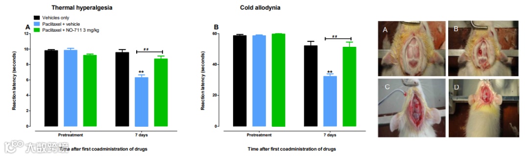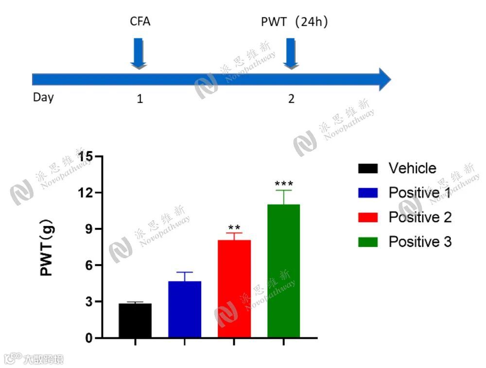 将动物置于保持在1℃~5℃金属板上,观测动物在一定时间内后脚收缩的次数及后脚保持在空中的时间,以衡量动物对冷刺激的敏感性。[12][13]