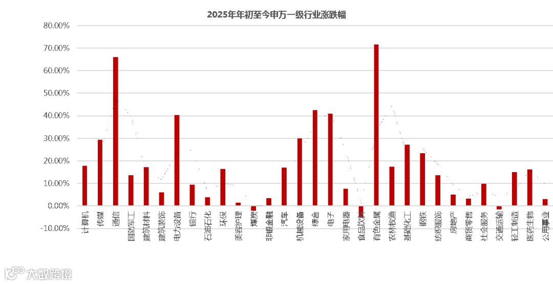 当前A股市场在复杂环境中呈现鲜明结构性特征,申万一级行业的分化表现尤为突出。从2025年年初以来数据看,科技成长与先进制造领涨市场,周期板块内部分化,消费医药有过不错的表现,结构性机会正从政策红利与产业趋势中持续涌现。