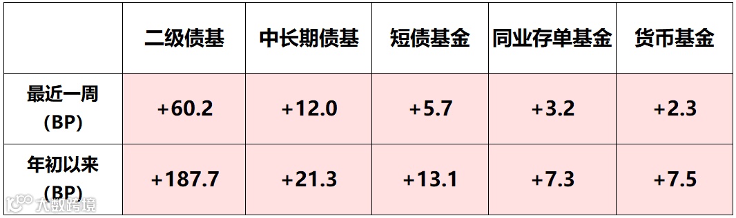 注:固收产品业绩表现数据来源于Wind,口径截至2026.01.25。其中二级债基、中长期债基、短债基金、同业存单基金、货币基金分别对应万得混合债券型二级基金指数(885007.WI)、万得中长期纯债型基金指数(885008.WI)、万得短期纯债型基金指数(885062.WI)、万得同业存单基金指数(885045.WI)、万得货币市场基金指数(885009.WI)。债券利率上行,对应着债券价格下跌,意味着固收类产品的净值趋于震荡或下滑,投资收益下降。反之,债券利率下行,对应着债券价格上涨,意味着固收类产品净值上行,投资收益上升。基金净值上涨1BP=上涨0.01%。