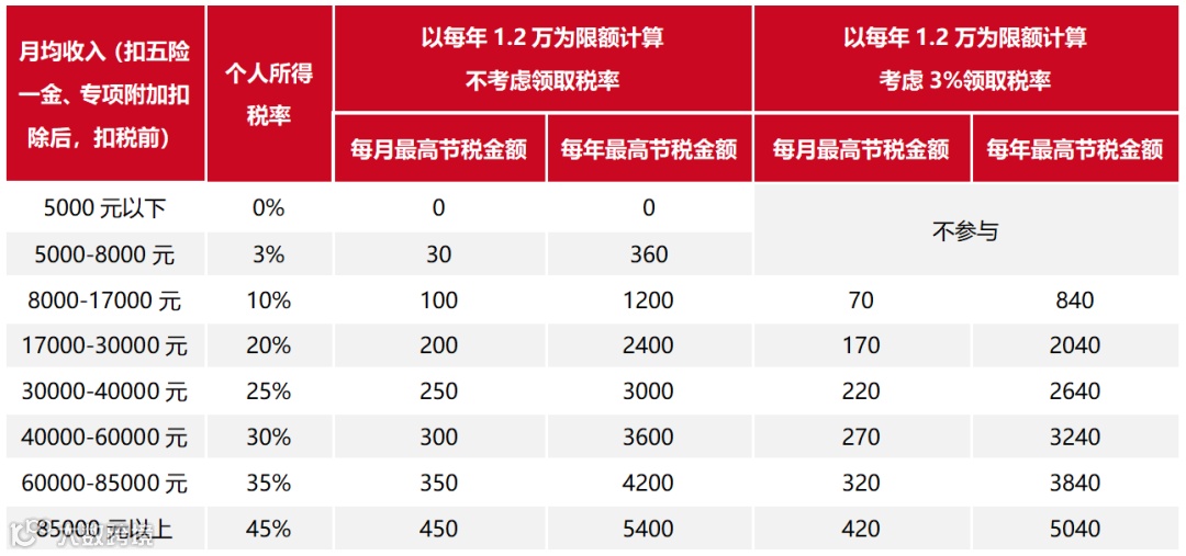 图:各档次税率对应的节税金额