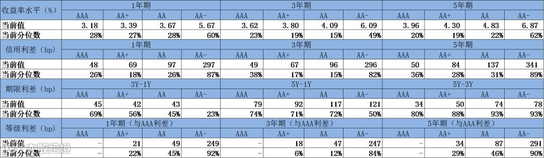 从信用利差来看,自18年7月下旬“宽信用”以来,信用利差整体处于震荡下行状态。目前3年期AA信用利差较18年7月的高点下行65bp。3年期以内隐含评级AA+和AA信用利差和等级利差普遍处于历史20%分位数以下,利差保护空间相对较为薄弱。如果市场整体的风险偏好降低,那么中低等级信用债利差重新走阔的风险较大。
