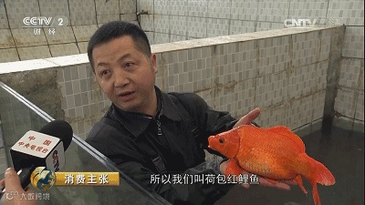 ▲ 可以立起来的荷包红鲤鱼,胖嘟嘟。图/CCTV《消费主张》