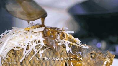 ▲ 给炸好的鲤鱼浇上滚烫的汤汁。图/二更