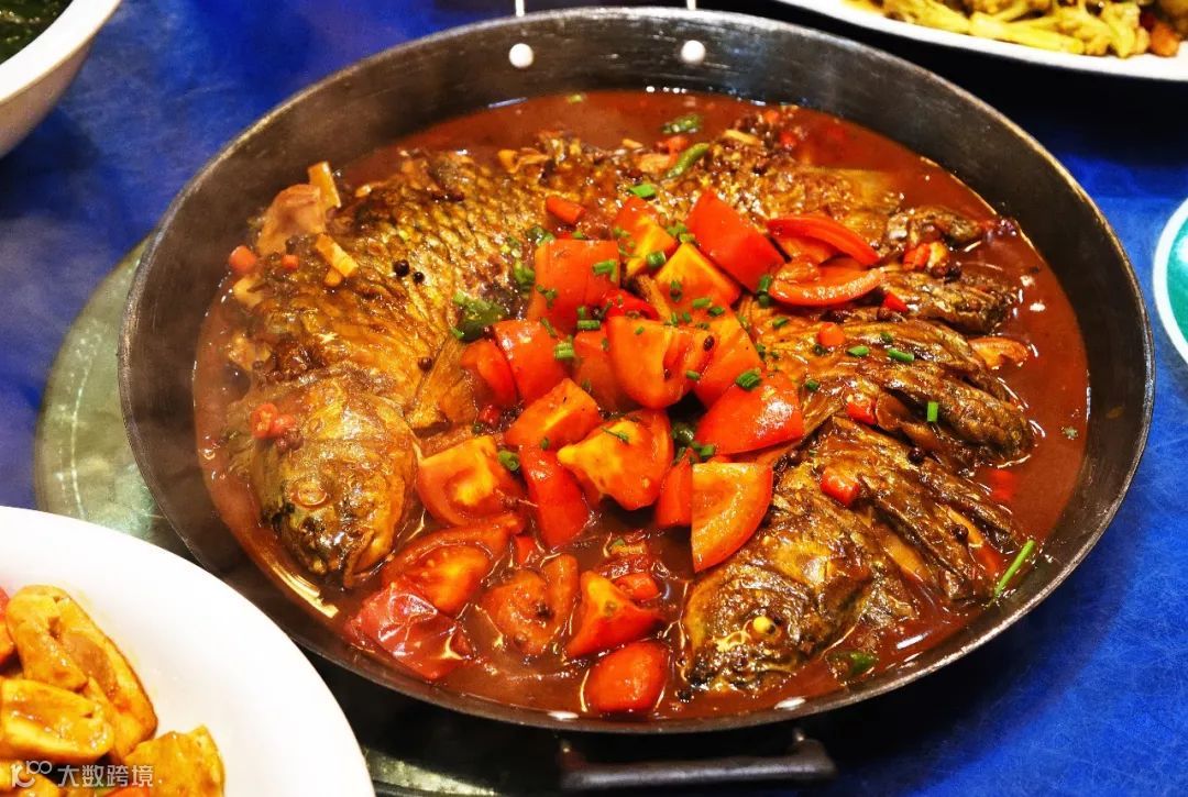 广西桂林阳朔的啤酒鱼,原材料也是带鳞的鲤鱼。先把宰洗后的鱼下油锅,炸至鳞片酥脆,再用啤酒、桂林风味的腐乳和番茄一同红烧。上桌的啤酒鱼依然在沸腾,鱼肉越煮越入味。