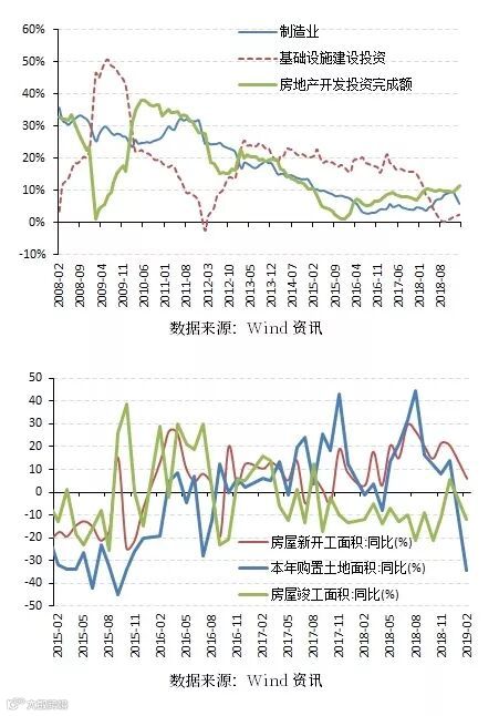 经济开局还待进一步信息确认。开年经济数据仍有疲弱现象,在生产端体现在工业增加值进一步走弱,5.3%的增速也显著低于预期和前值。由于今年春节在2月初,城市务工人员返乡过节,叠加持续阴雨天气,不利工业生产。从主要工业品产量来看,发电量等下行,粗钢、平板玻璃等加速,一方面显示制造业与基建预期的分化,另一方面也显示了短期有补库存的行为,所以这种短期的回落在3月会出现比较明显的阶段性反弹。在需求端则显示为基建、消费略有修复但幅度不大,出口数据回落幅度较大,地产投资仍超预期的高增长,整体上相对偏弱。1-2月基建投资同比增长2.6%,较去年底回升0.8个百分点,源于“基建补短板”、地方债发行提前及扩容等因素,说明在地方债发行加速、信贷快速增加的环境下基建有企稳迹象,结合3月的开工情况大概率会延续反弹;1-2月制造业投资同比增长5.9%,较去年底大幅回落3.6个百分点,这与PPI趋势的指向一致,尽管技改和高端制造仍维持高位,但难以抵挡数据走弱。房地产投资完成额同比增长11.6%,后续可能会有一些下行但幅度并不会太大,主要是建安投资2018年的增速其实是由于口径变化而低估,往后看2019年建安投资不会太差,但土地购置因素会压制地产投资。1-2月消费同比名义增长8.2%,持平预期和前值,实际增长7.1%,加快0.5个百分点。汽车消费有所回升,“后地产”板块明显拖累,随着竣工数据的好转可能有一些支撑因素。剔除春节因素,2月美元计价进出口、出口和进口分别增长3.9%、1.5%和6.5%。1-2月出口累计同比-4.6%,与12月接近;1-2月进口累计同比-3.1%,略高于12月,全球外需出现了共振式的下行,其中尤其以欧洲回落幅度最大,但考虑到前期出现了抢出口现象,所以美国经济相对温和的回落下对美出口也出现了比较大幅的回落,这一现象简单外推还会延续1-2个月的时间,但后续会淡化,3月数据因基数效应会有所反弹,但并不构成持续向上的趋势。