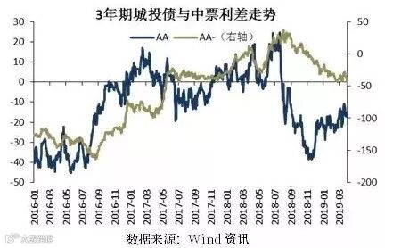 自18年7月本轮宽信用以来,AA级信用利差和等级利差的累计压缩约50bp,其中18年10-12月是利差快速压缩阶段,今年以来利差压缩速度明显放缓。目前AA级信用利差和等级利差均已处于历史15%分位数以下,后下继续压缩的空间已不大。同时随着民企信用风险发酵,市场的信用风险偏好难以有大幅提升,二季度信用利差大概率呈现震荡走势,但不排除在利率债继续调整的背景下,信用债调整滞后,信用利差出现被动压缩。自本轮宽信用以来,3年期隐含评级AA-级中票的信用利差和等级利差累计仅压缩了30bp左右,目前仍处于历史85%分位数以上,说明投资者对于级别下沉,特别是产业债级别下沉较为谨慎。
