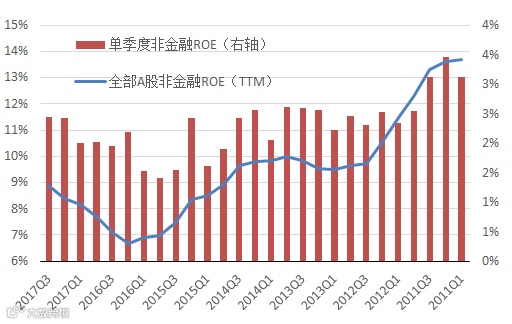 名义增速温和回落下,盈利增速温和下行。宏观经济保持相对稳定,盈利弱复苏持续,在此环境下,我们认为企业盈利并不会出现显著回落。如果我们以ROE作为主要关注点,净利润率与PPI高度相关,而根据我们的预测PPI会出现温和的回落;但考虑到资产周转率的抬升空间和持续性会较好,可以弥补销售利润率的回落幅度,因此ROE仍将维持趋势性的小幅改善,只是改善的幅度难现2017年的幅度。一是销售净利润率的抬升、价格体系的理顺有利于企业盈利的恢复。二是名义增速的回落,但国际化过程中企业收入的外延在扩张。三是产业结构改善,重资产行业逐渐向服务业转型,企业毛利在持续增长。四是行业内逐渐出现分层,龙头公司(权重更大)在资本获取能力、产品溢价能力、降低费用能力都更强,且权重更大后市场整体更倾向于改善。