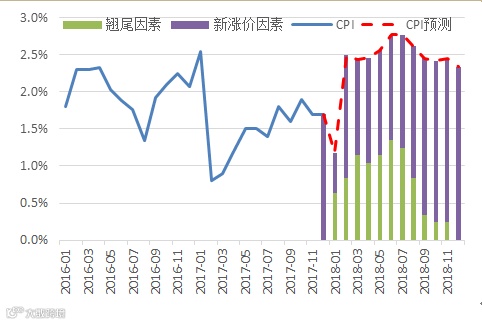 通胀主线会从PPI转向CPI,通胀预期超预期上行是风险。由于大宗商品需求见底叠加中国供给收缩,2017年的PPI上行是一个主线。预计2018年这一情况将有改变,PPI缓步回落已经形成趋势。名义GDP缓步回落的趋势已经形成,供给侧改革影响的弹性最大阶段已经度过,基数效应也会带来通胀回落。CPI上行的压力并不大,但是中枢缓慢上移中需要关注外部风险。食品CPI中枢将在翘尾因素反弹、猪周期同比触底、春节错位、2-4月菜价基数较低等因素作用下显著上行。非食品CPI中枢略低于今年。