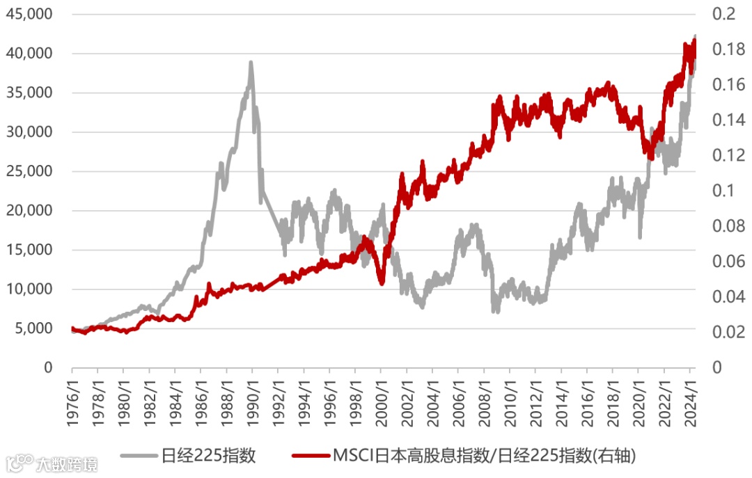图表2:MSCI日本高股息指数与日经225指数相对走势
