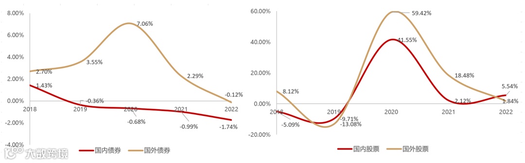 回顾近五年数据,相较于本国债券而言,GPIF能够从国外债券投资中获取更高收益率;而海外权益投资呈现收益率更高、波动剧烈的特征,有机组合后有利于提升资产组合的整体收益率。