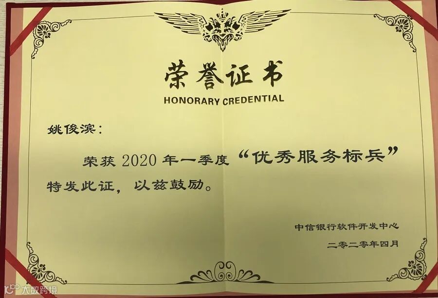 荣获中信银行软件开发中心颁发的