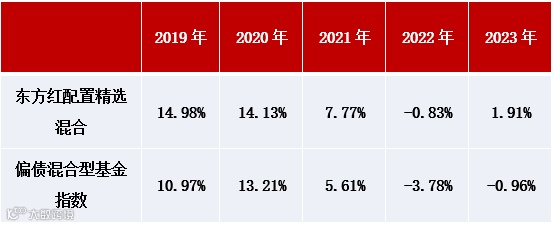 图:2019-2023年东方红配置精选混合A与偏债混合基金指数走势对比