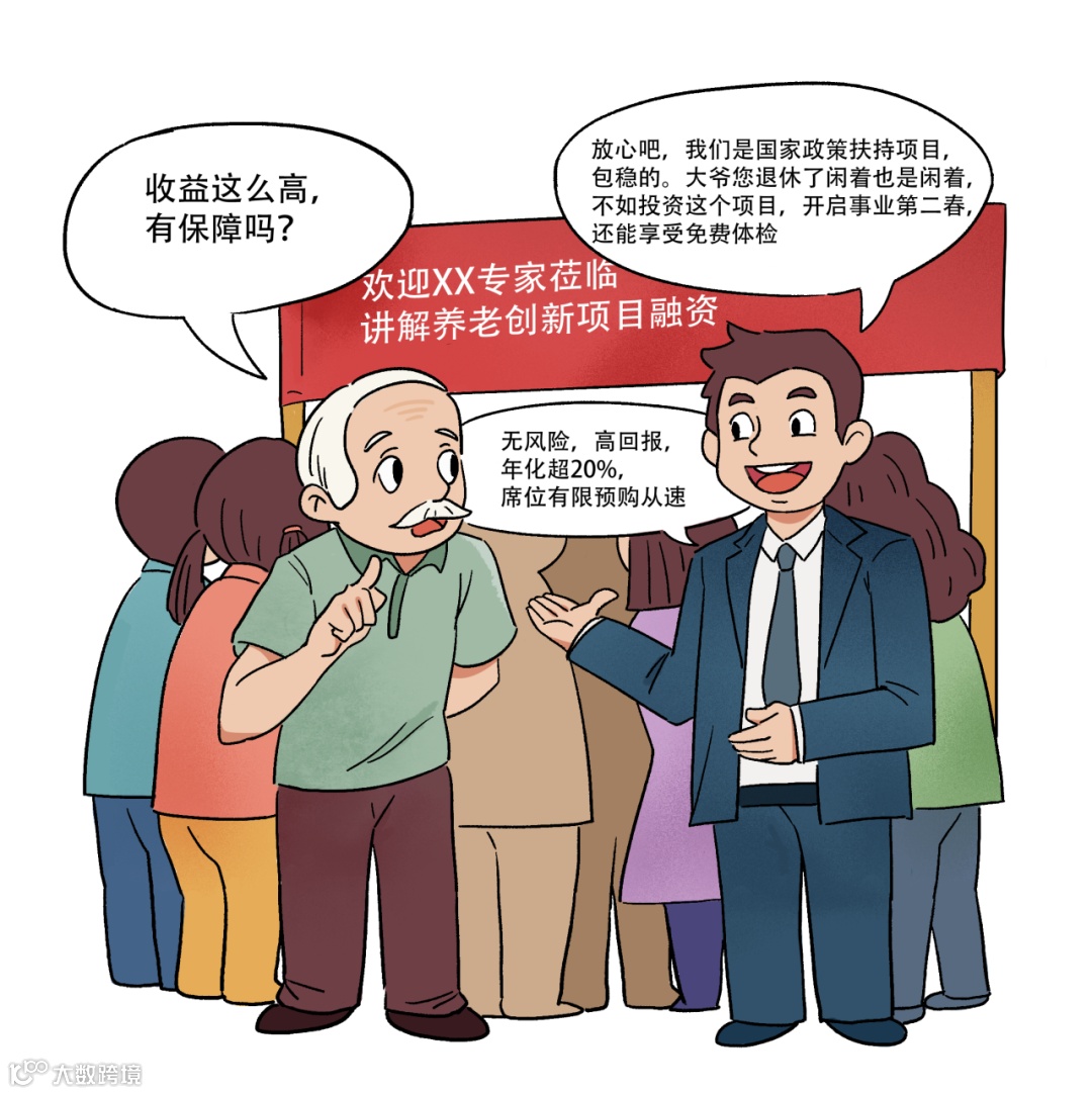 故事中的骗局在现代不断升级,今天的骗子甚至不需要伪装开店,而是利用互联网和社交平台,包装出看似高收益、低风险的投资项目,骗取财物。他们通常通过注册合法企业营造正规投资的假象,并以各种利诱手段诓骗老百姓入局。