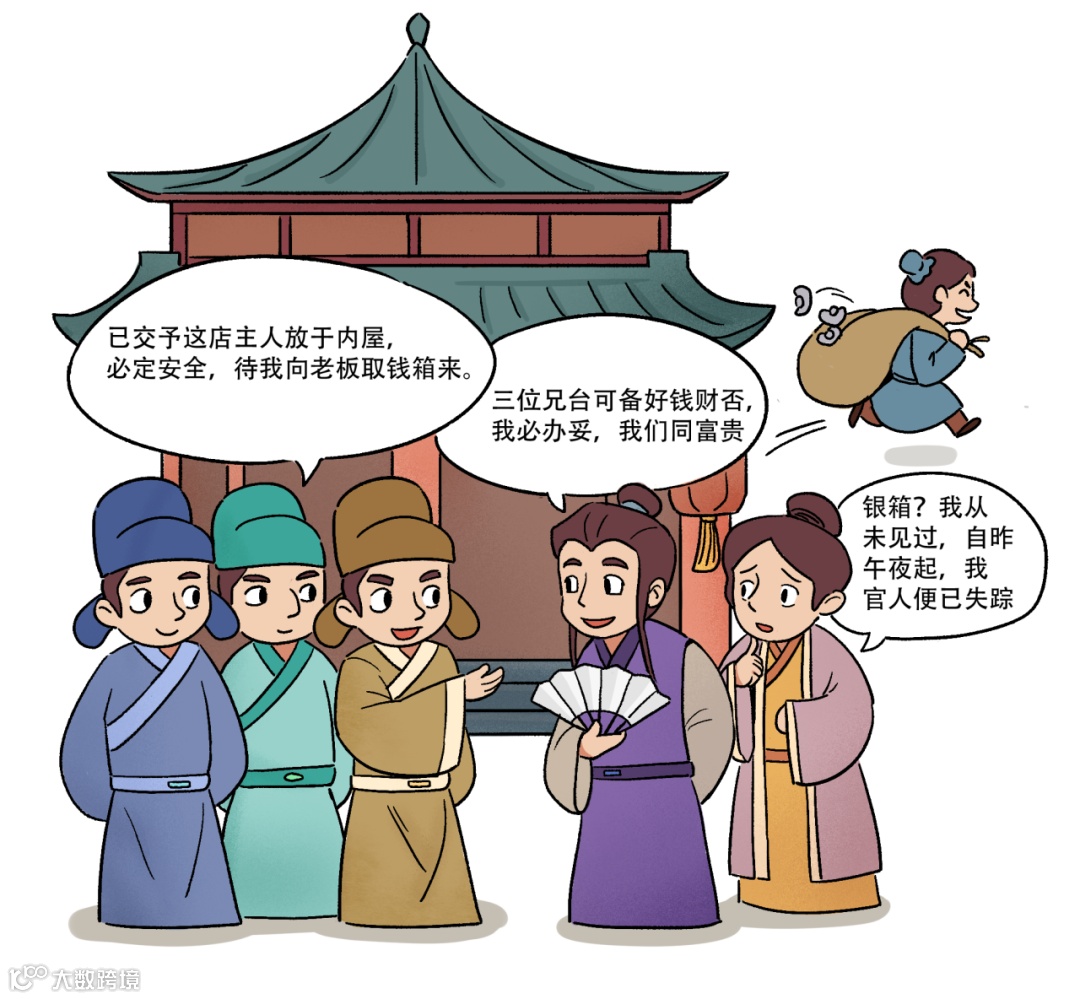 三个骗子用骗来的银子合伙开店娶妻雇仆,