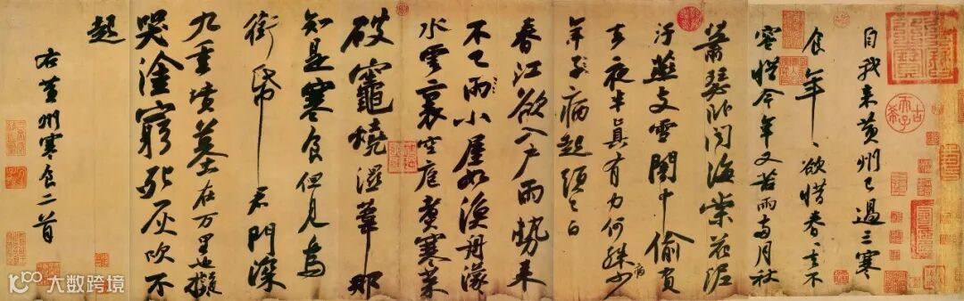 例如苏轼的《黄州寒食诗帖》,被誉为“天下第三行书”,就是章法布局方面的上佳之作。观赏这幅作品,可以发现字里行间充满着浓烈的情感张力与结构美感,章法上字形大小错落有致,字势纵横,布白疏密得当,节奏起伏跌宕。