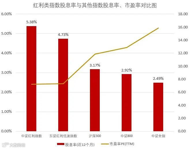 红利类资产的核心吸引力是高股息率,与股票市场其他指数相比,红利类指数(如:中证红利指数、东证红利低波指数)的股息率明显高出一大截。在市场利率下行的当下,高股息率的投资价值愈发凸显。