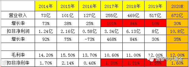 估值分析:回溯公司过去5年历史估值,考虑行业高景气周期及龙头规模效应,参考行业平均估值情况,给予其2020年PE弹性区间30—60倍,目前股价处于中上轨位置,但长期来看估值不高,具备较好投资价值。