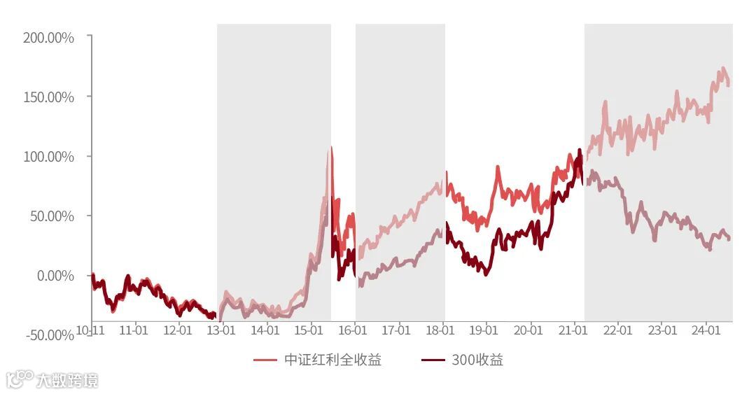 图4:中证红利全收益指数与沪深300全收益指数走势图