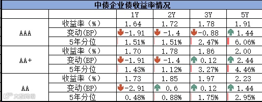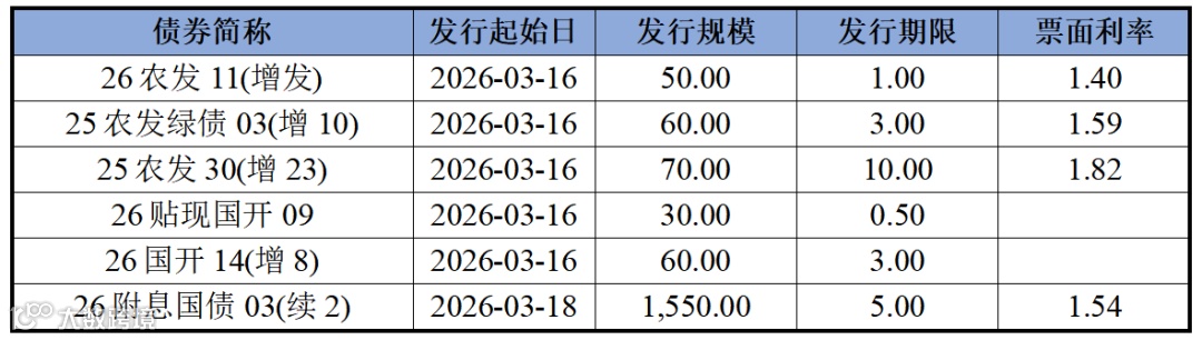 信用债方面,各期限中短期票据和企业债到期收益率整体上行,中债中短期票据到期收益率1年期下行2.12bp,3年期上行0.24bp;企业债到期收益率1年期下行0.69bp,3年期上行0.32bp。