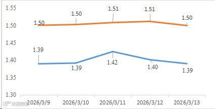 截至3月12日,国债收益率短端下行,长端上行,曲线走抖,10Y-1Y利差为54.09,较3月6日走扩5.48BP,处于近5年34.65%的历史分位。