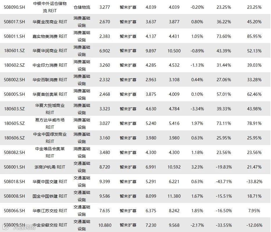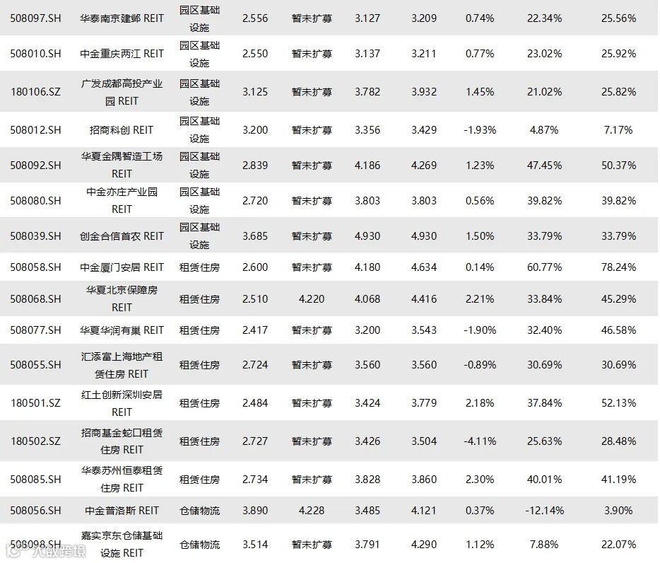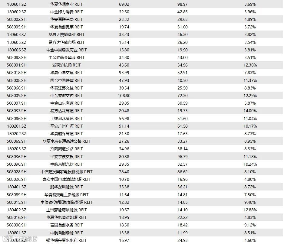 截至10月24日收盘,已上市75只REITs的收益率情况如下表所示: