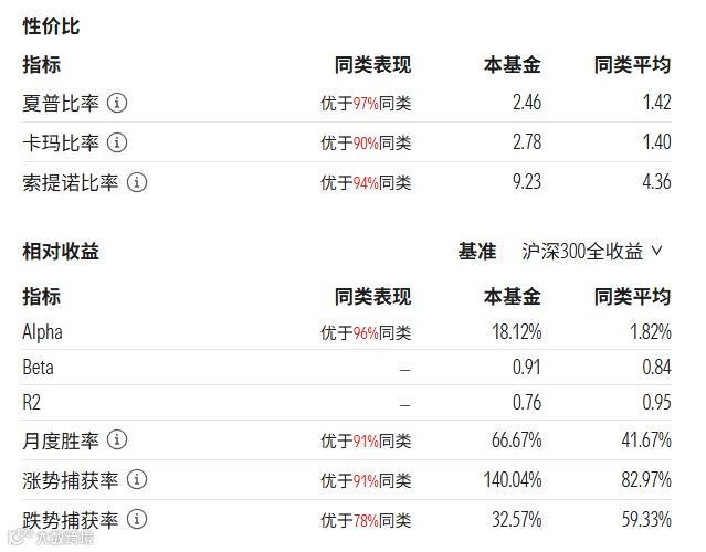 以国泰海通资管旗下唯一一只全市场选股公募量化产品为例,截至2025.10.31,国泰海通量化选股混合发起A(016466)最近一年的夏普比率优于97%的同类产品(采用晨星中国基金分类标准,下同)。同期,该产品获取alpha收益的能力,同样超过96%的同类产品。