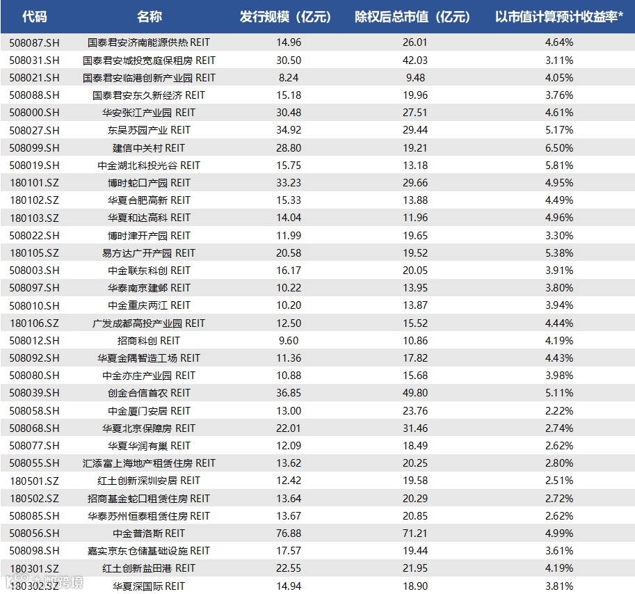 注2:市值包括产品首发市值及扩募市值。基础设施项目可供分配现金流包括产品整体资产组合(首发项目及扩募项目)可供分配现金流。