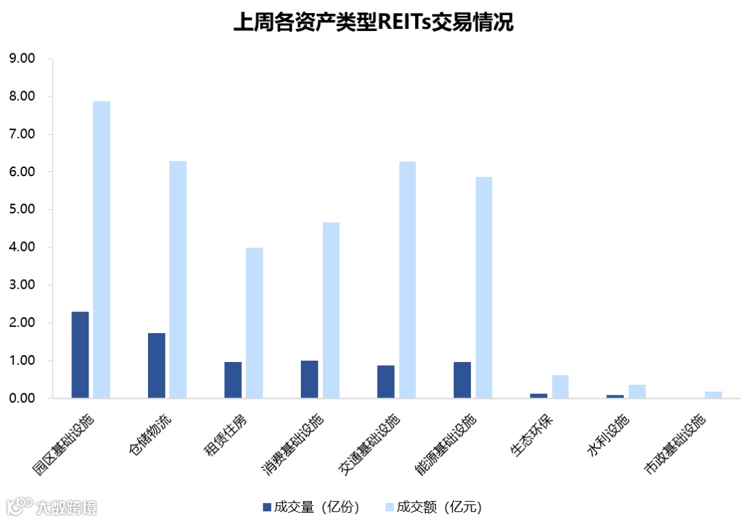 图表5▼上周REITs成交量及交额情况