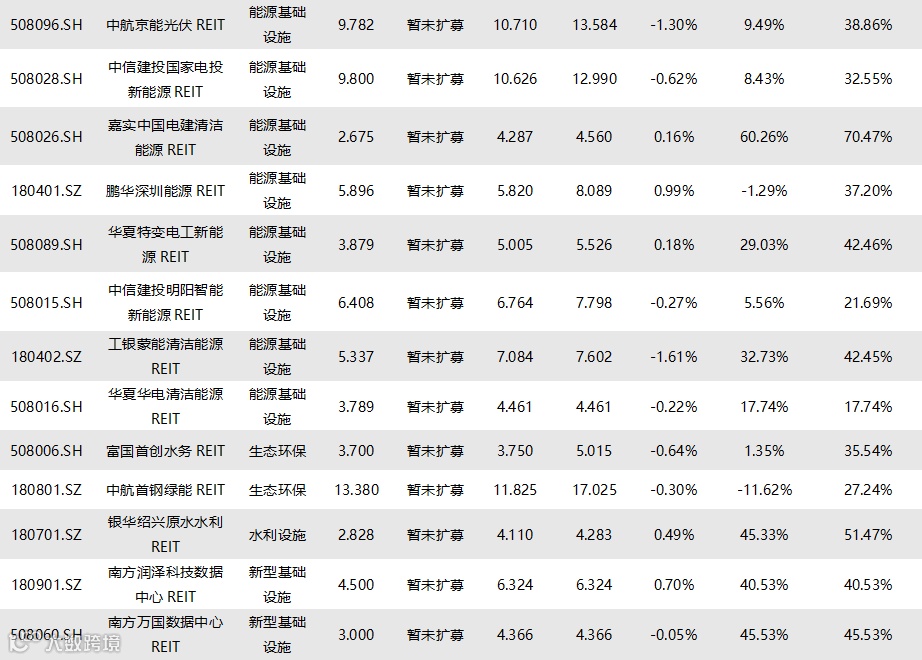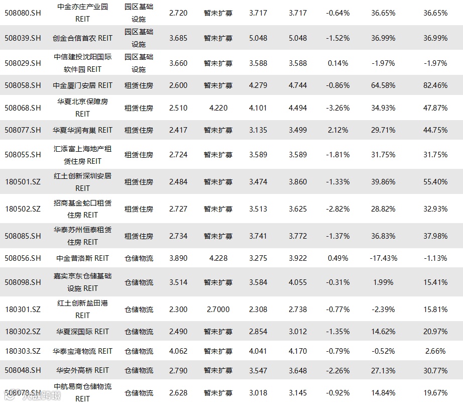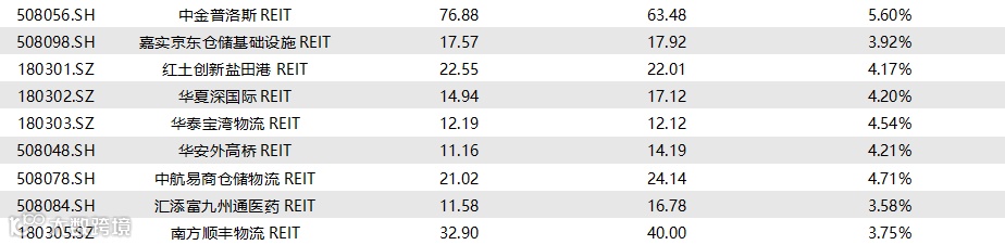 图表10▼已上市REITs收益率统计
