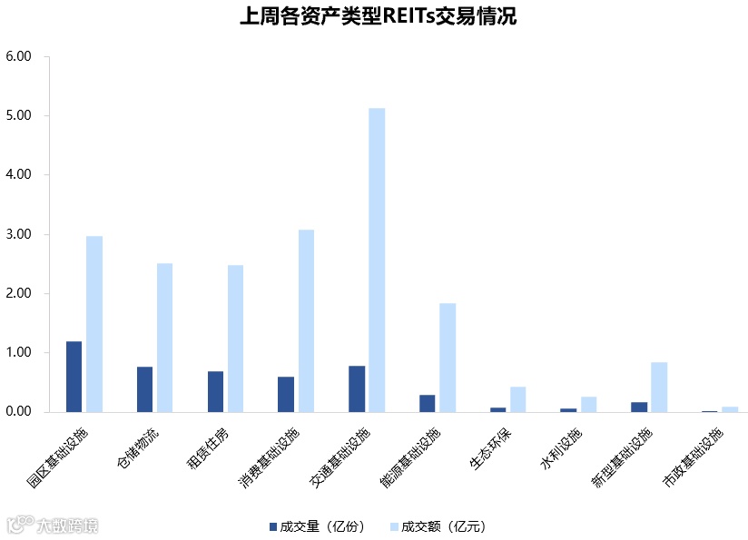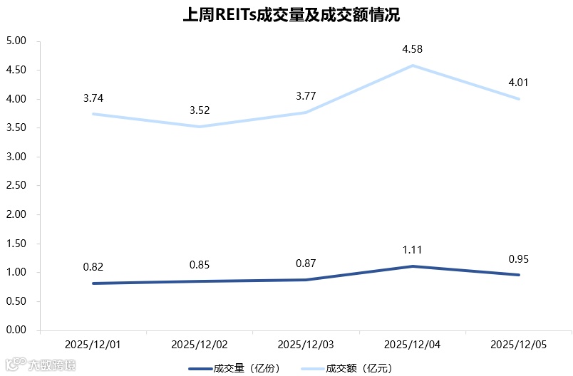 图表5▼上周REITs成交量及交额情况
