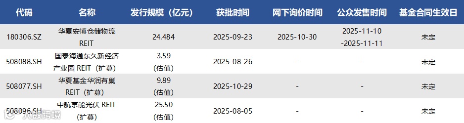 截至12月5日,已获批待上市REITs共有4只(含扩募3只),情况如下表所示:
