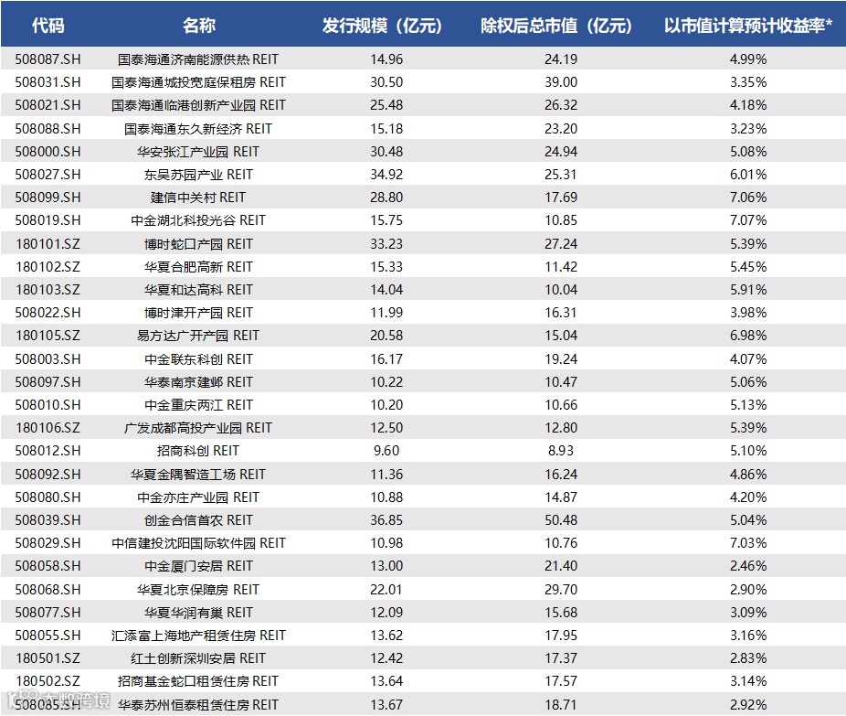 注1:以市值计算预期收益率=基金招募说明书公开披露基础设施项目2025年可供分配预测金额(年化)/截至2025年12月5日收盘基金市值。如未披露2025年全年可供分配预测金额的基金,以其招募说明书披露的最后一年可供分配预测金额为基准,仅供参考。