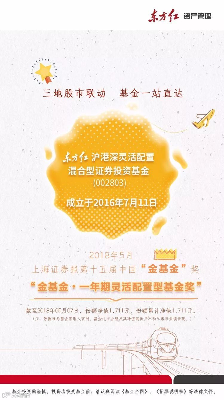 在第十五届中国“金基金”奖评选中,东方红沪港深混合基金荣获“金基金•一年期灵活配置型基金奖”。