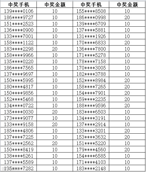 3、中奖金额将于每周五以话费的形式发放到您的中奖手机,届时敬请留意短信