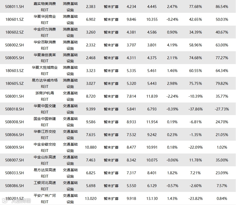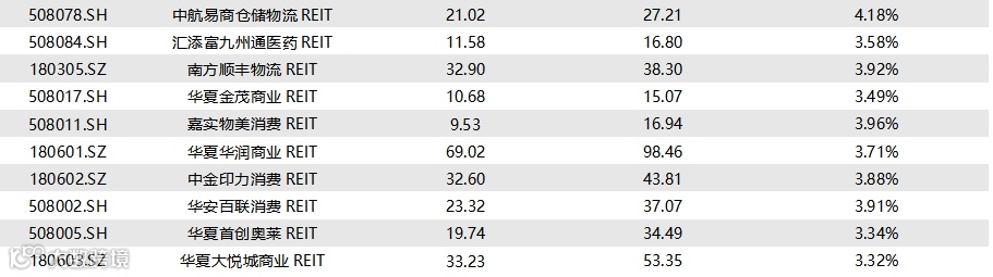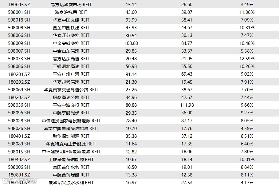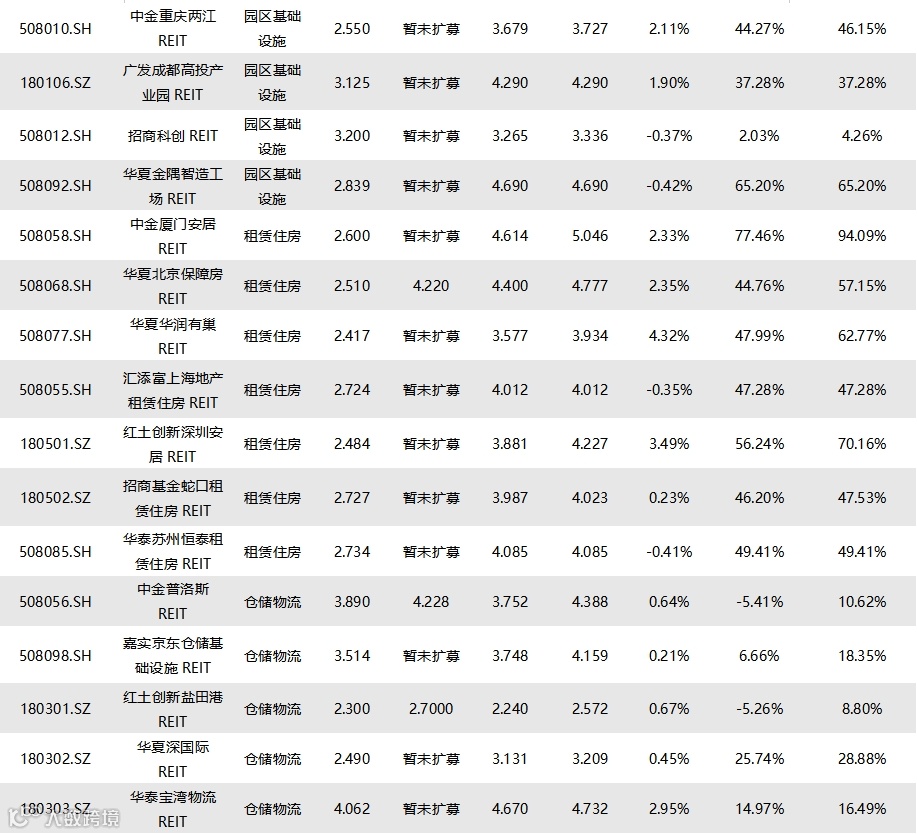 截至6月13日收盘,已上市66只REITs的收益率情况如下表所示: