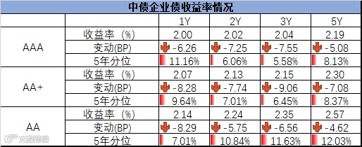 信用债方面,各期限中短期票据和企业债到期收益率整体下行,中债中短期票据到期收益率1年期下行5.93bp,3年期下行8.15bp;企业债到期收益率1年期下行5.03bp,3年期下行7.16bp。