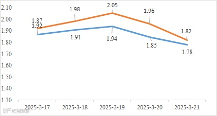 截至3月20日,国债收益率短端下行,长端上行,曲线走平,10Y-1Y利差为26.80,较3月14日收窄1.06BP,处于近5年1.21%的历史分位。