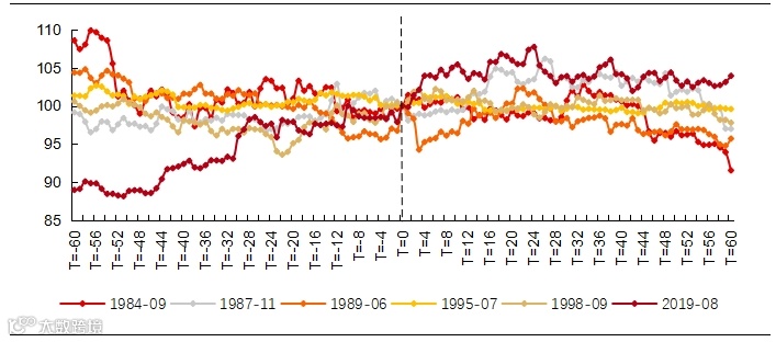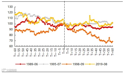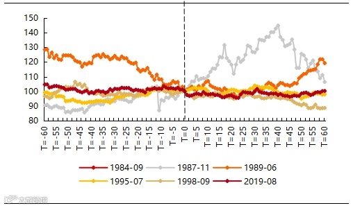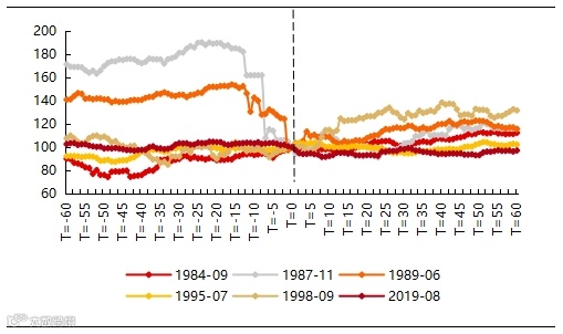 图表:1982年至今预防式降息前后60个交易日上证指数表现