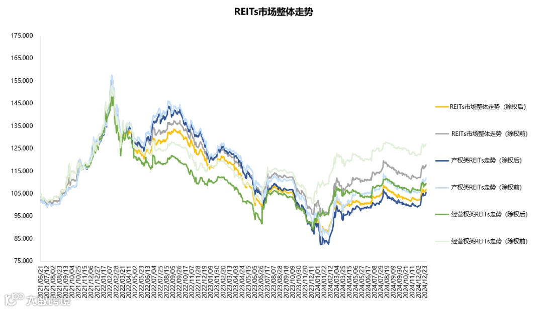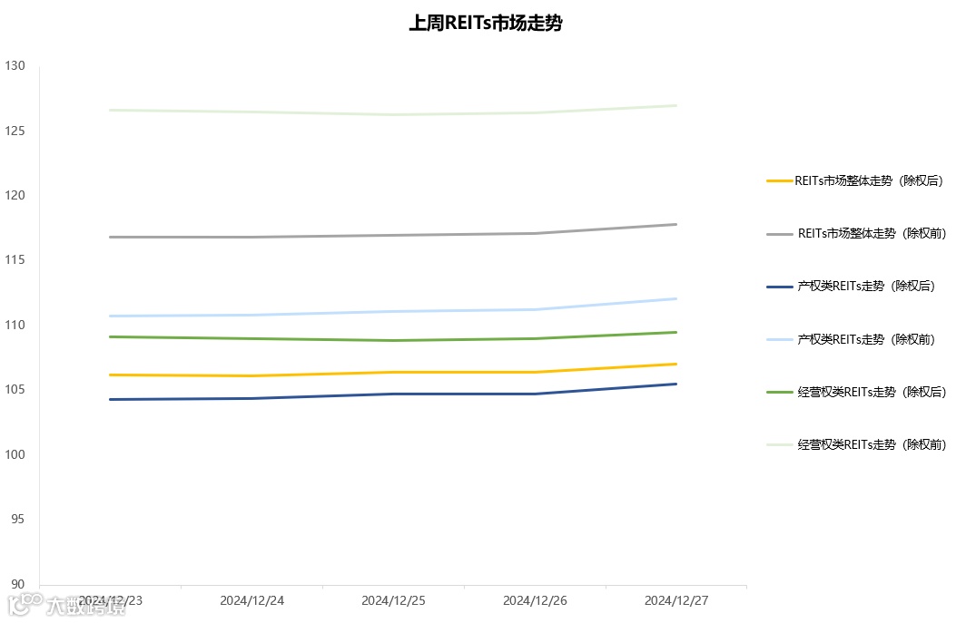 2024年12月23日至2024年12月27日,REITs市场整体平稳,走势情况如下图所示: