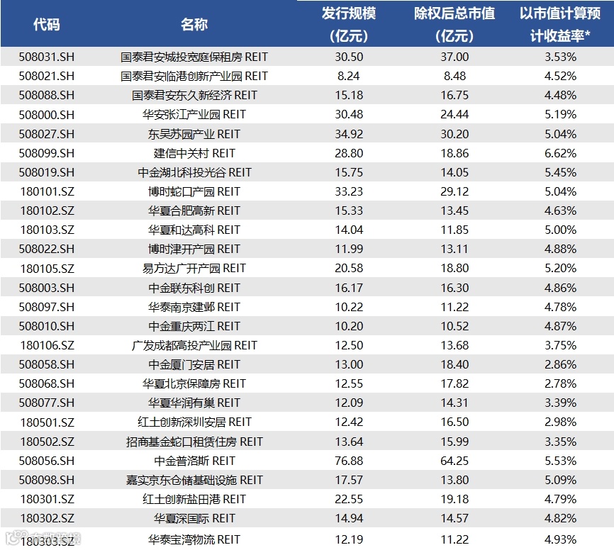 注1:以市值计算预期收益率=基金招募说明书公开披露基础设施项目2024年可供分配预测金额(年化)/截止2024年12月27日收盘基金市值。如未披露2024年全年可供分配预测金额的基金,以其招募说明书披露的最后一年可供分配预测金额为基准,仅供参考。