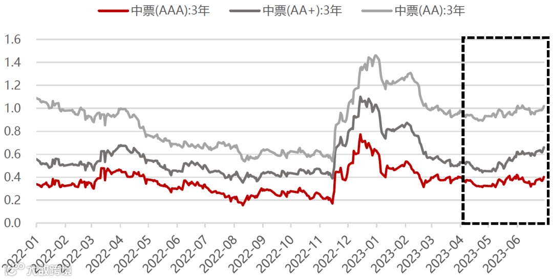 信用债方面,利差被动小幅走阔。去年底市场波动较大的背景下,信用债的收益率、信用利差及等级利差全面回升至2021年以来的绝对高位,配置价值较高,故今年以来利差压缩行情率先上演,一季度压缩空间尤为显著。二季度以来,信用债利差压缩空间边际收窄,加之基本面因素转弱,利率债也开始下行,整体表现为利率债下行幅度大于信用债、高等级信用债下行幅度大于中低等级信用债,信用利差和等级利差被动小幅走阔。