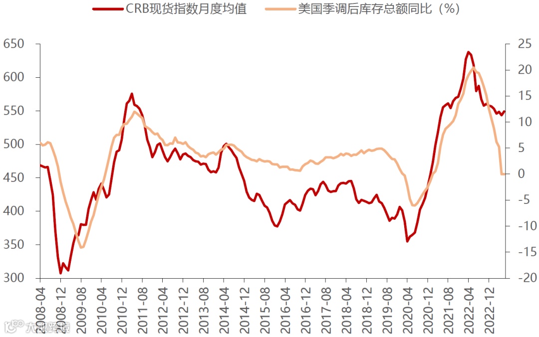 图8:美国库存周期与大宗商品价格呈现正相关性