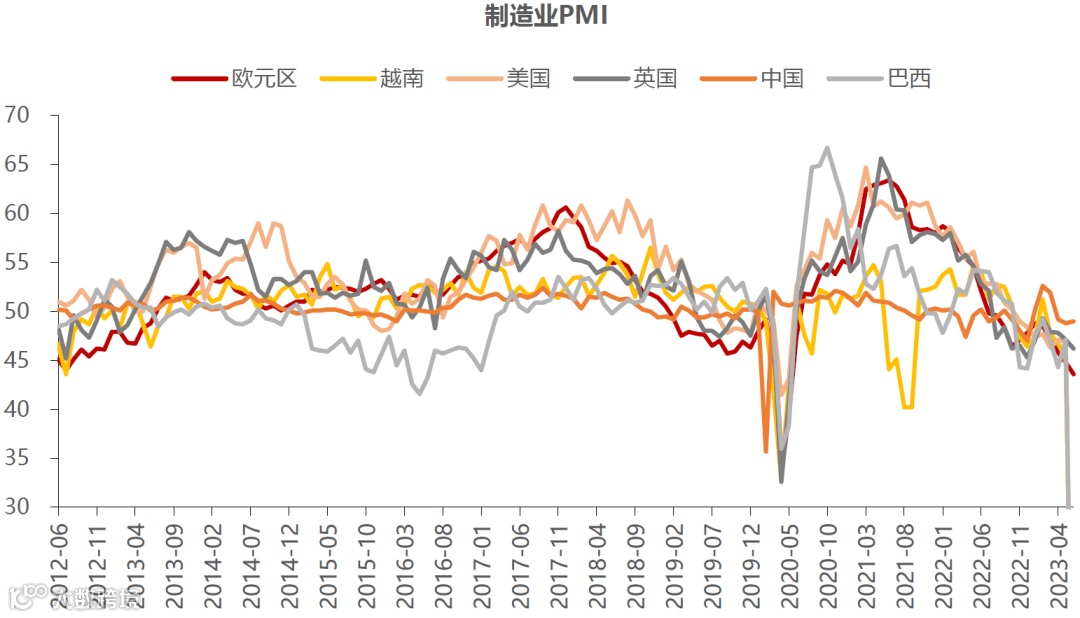 出口方面,美国本轮始于2022年7月的去库周期一方面导致美国对华商品采购的需求大幅走弱,令中国对美出口自2022年下半年以来持续承压;另一方面通过其“外部性”,即影响海外其他经济体的对美出口进而影响其国内经济,最终影响其对华商品的需求、拖累中国对这些海外经济体的出口。后者在中国5月出口数据中得到充分显现,即东盟、欧盟、印度、拉美等之前对中国出口同比增速起拉动作用的经济体在5月也都产生拖累。目前看美国去库仍在进行,且本轮去库还有相当空间:2023年5月美国制造业PMI为46.9%,较前值继续下滑,库存作为其滞后指标,2023年4月美国季调后库存总额同比+5.23%,也较前值继续下滑,因此预计三季度中国出口仍然承压。
