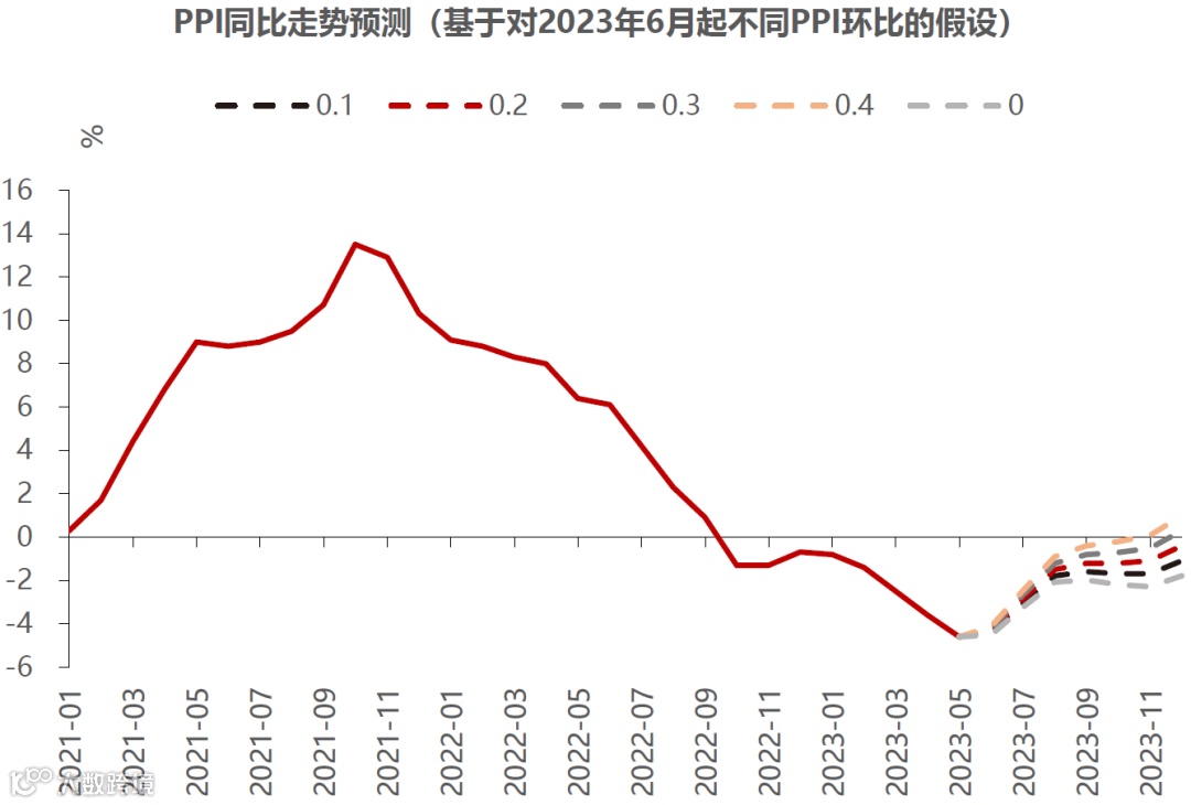 图10:基于不同PPI环比假设下的PPI同比走势预测