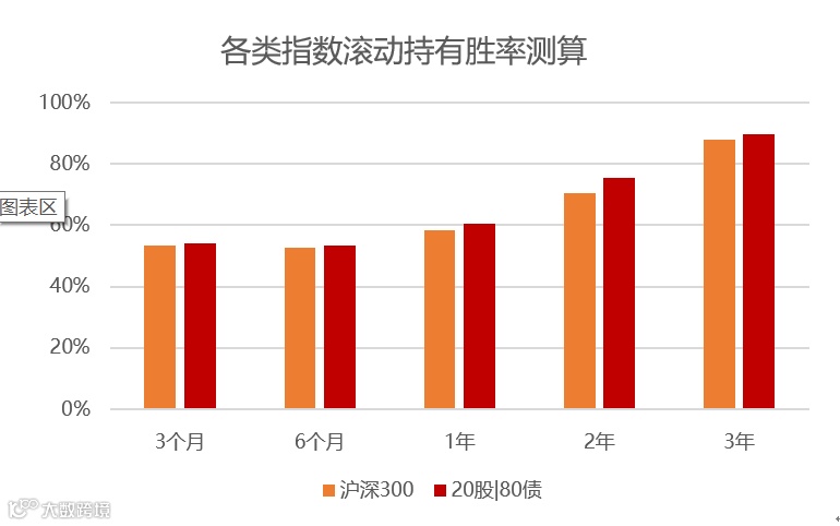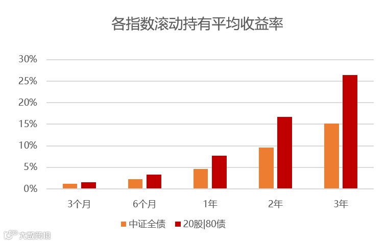 假如我们以20%沪深300指数与80%中证全债指数作为拟合指数进行测算,股债搭配兼备进攻性和防御性:相对沪深300指数能够提升胜率,相对中证全债指数能够提高收益水平。