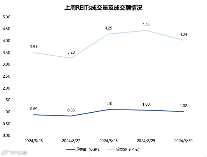 图表5▼上周REITs成交量及交额情况